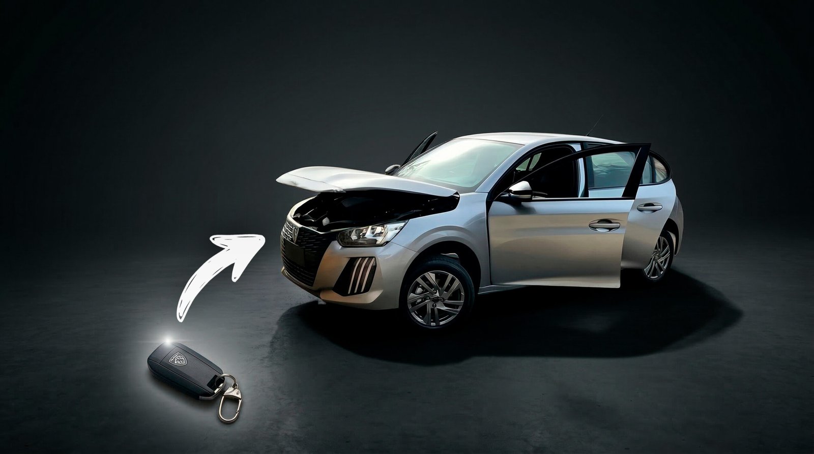 No chão de asfalto, bem no centro da tela, há uma chave de carro descansando. Fase 2: A Primeira Transformação. No exato momento em que o dedo toca sobre a chave, a chave se expande violentamente e se transforma em uma única roda de carro em tamanho real. [COLOQUE O MODELO DA RODA E DO SEU CARRO AQUI]: A transição da chave para a roda deve ter um efeito rápido e fluido de expansão e leve distorção visual. Deve mostrar a roda com clareza e parada antes da próxima cena. Fase 3: A Multiplicação. A roda recém-criada rola levemente para a frente, dá um pequeno salto no ar e, ao bater no chão novamente, multiplica-se instantaneamente, formando uma pilha vertical de quatro rodas idênticas. Fase 4: O Posicionamento dos Eixos. A pilha de quatro rodas se desfaz em uma fração de segundo. As rodas voam e param flutuando no ar, posicionando-se exatamente nos quatro cantos que formariam a base de um veículo (dois pneus na frente, dois atrás). Fase 5: A Estrutura. Um chassi mecânico de metal escuro (incluindo eixos e suspensão) materializa-se do nada e se encaixa instantaneamente, conectando as quatro rodas flutuantes. Fase 6: A Montagem Explosiva. Partes da carroceria (portas, capô, teto, para-choques, faróis e vidros) voam de cima e das laterais da tela em alta velocidade. Elas se encaixam magneticamente no chassi, peça por peça, em uma montagem coreografada que dura cerca de dois segundos. [COLOQUE MODELO DO SEU CARRO AQUI]: O veículo que se forma deve ser uma réplica exata da referência visual em anexo. Fase 7: O Toque Final. O carro, agora totalmente montado, assenta seu peso sobre a suspensão no asfalto. Como movimento final de impacto, as duas portas dianteiras se abrem quase até o limite e, em seguida, batem e se fecham sozinhas simultaneamente. O vídeo termina com o carro perfeitamente estacionado.A Mágica da Edição: CapCut + Música Viral